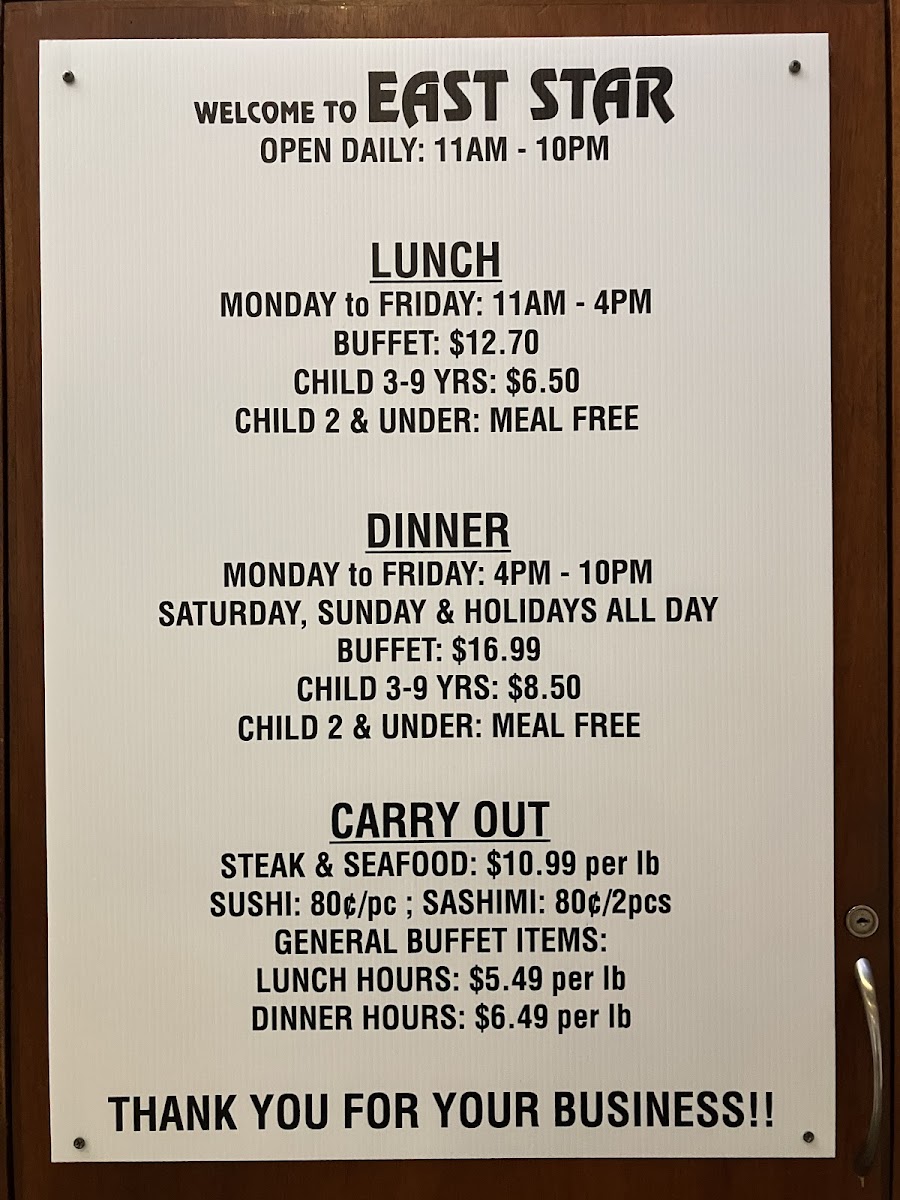 Looking for quick takeout? East Star also offers fantastic to-go options with competitive pricing, making it easy to enjoy your favorite dishes wherever you are. With lunch at just US$4.99 per lb, you can indulge in your favorites without breaking the bank.